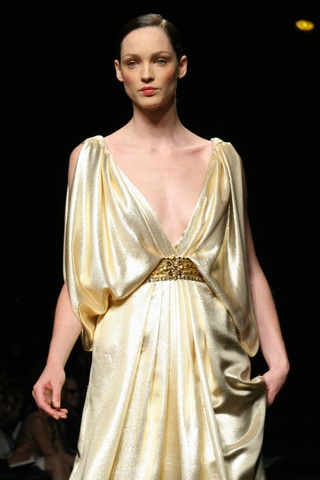 la nueva Colección de Novia que presenta Rosa Clará para este 2012 apuesta por una combinación del blanco con sofisticados toques de oro. tres grandes lineas aportan riqueza y variedad a las siluetas de esta nueva propuesta: