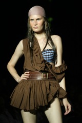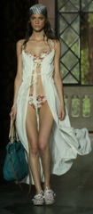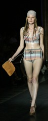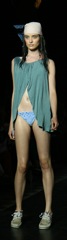Llamada Mujer, sin duda una declaración de intenciones clara con ese nombre para la línea de la próxima temporada veraniega. Ha buscado el resurgir de la silueta femenina al más puro estilo retro, ésta es la propuesta que TCN ha presentado en la primera jornada de desfiles de la pasarela catalana, así que ha arrancado a lo grande con la presencia de esta marca catalana. En su colección de baño ha destacado el marcaje de la cintura alta, muy alta, y sube el camal de la pierna, también hemos podido ver maillots con diferentes tejidos y estampados descoordinados que dejan la posibilidad de un baño-mix.Aunque el rey de la pasarela ha sido el bandeau. Los bikinis aceptan todo los estampados posibles, desde topos y animal print, a más clásicos, y con diferentes dimensiones, aunque sin dejar atrás cretonas y flores en la seda, dando ese toque más romántico al look. Por lo que respecta a los colores, hemos podido ver todo, muy variado, pasando de verdes agua con toques de fresa hasta mostazas sobre azules, puro contraste.