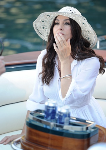 Portofino, Italia 17 de septiembre de 2012. La actriz italiana Monica Belluci va a portagonizar un anuncio Perlage Cisowianka que se muestra en la televisión polaca el próximo año.