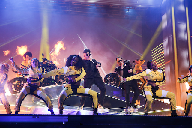 Recayó sobre Armando Christian Pérez, conocido en el mundo musical como Pitbull, entregar a la cantautora Gloria Estefan y su esposo, el productor musical Emilio Estefan, el segundo reconocimiento especial de la noche.